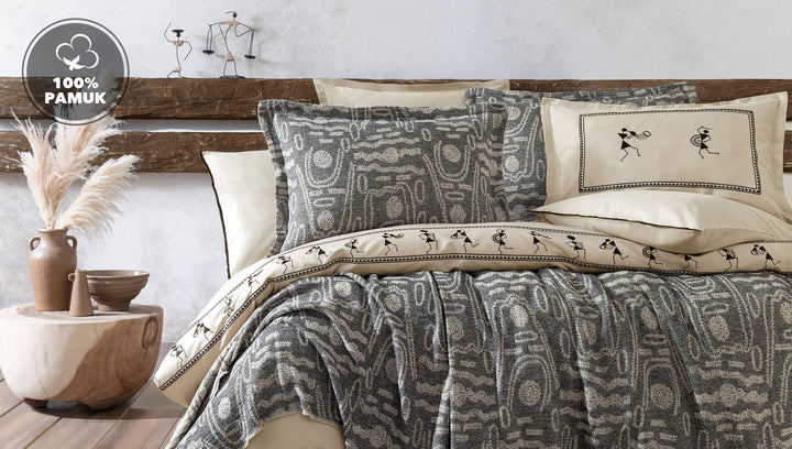 Proměňte svou ložnici v prostor neobyčejné elegance s přehozovým setem Pulido. Tento set je navržen pro ty, kteří hledají něco mimořádného. Pulido set s autentickými vzory zdobenými teplými béžovými tóny je ideálním doplňkem každé ložnice. Set Pulido není jen o estetice; nabízí výjimečný spánkový zážitek díky 100% bavlněné kvalitě, která zajišťuje měkkost a pohodlí každou noc.